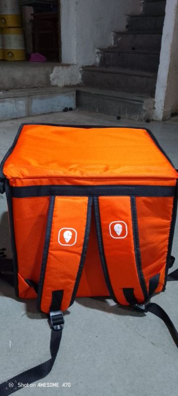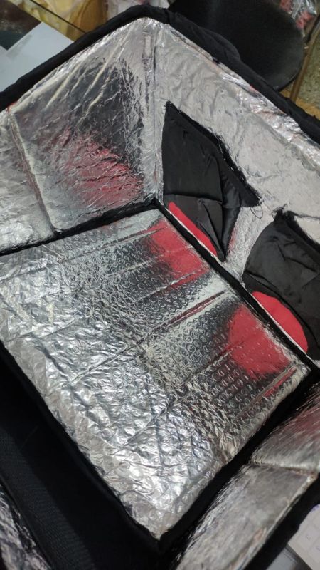 Durable and insulated food delivery bag designed to keep food hot and fresh during transit. Made from high-quality, water-resistant material with thermal insulation lining, it ensures safe and hygienic delivery. Features strong handles, adjustable straps, and spacious compartments for carrying multiple orders. Ideal for restaurants, cloud kitchens, and delivery services.